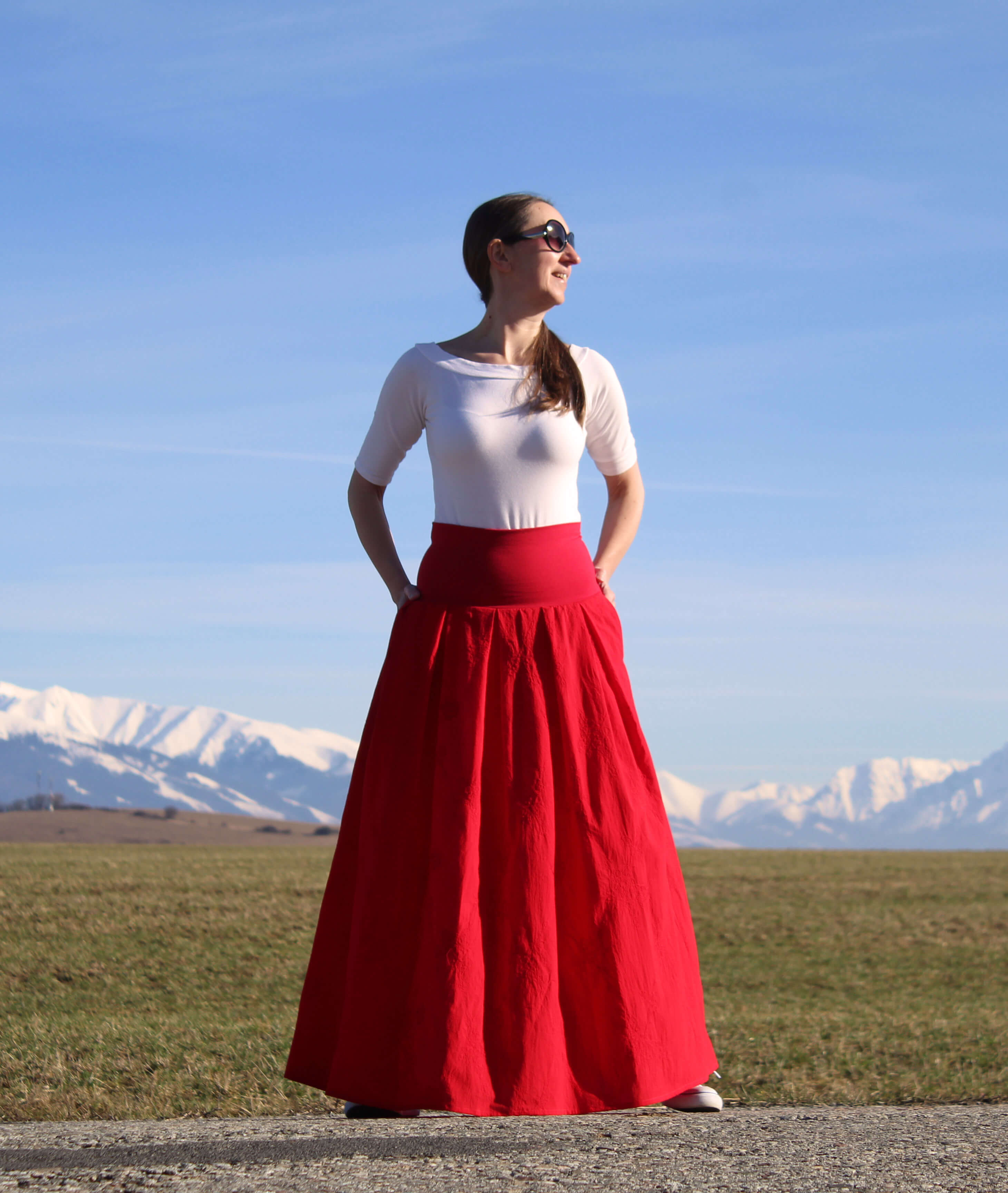 3. Bavlnená červená sukňa s vyšívanými kvetmi
