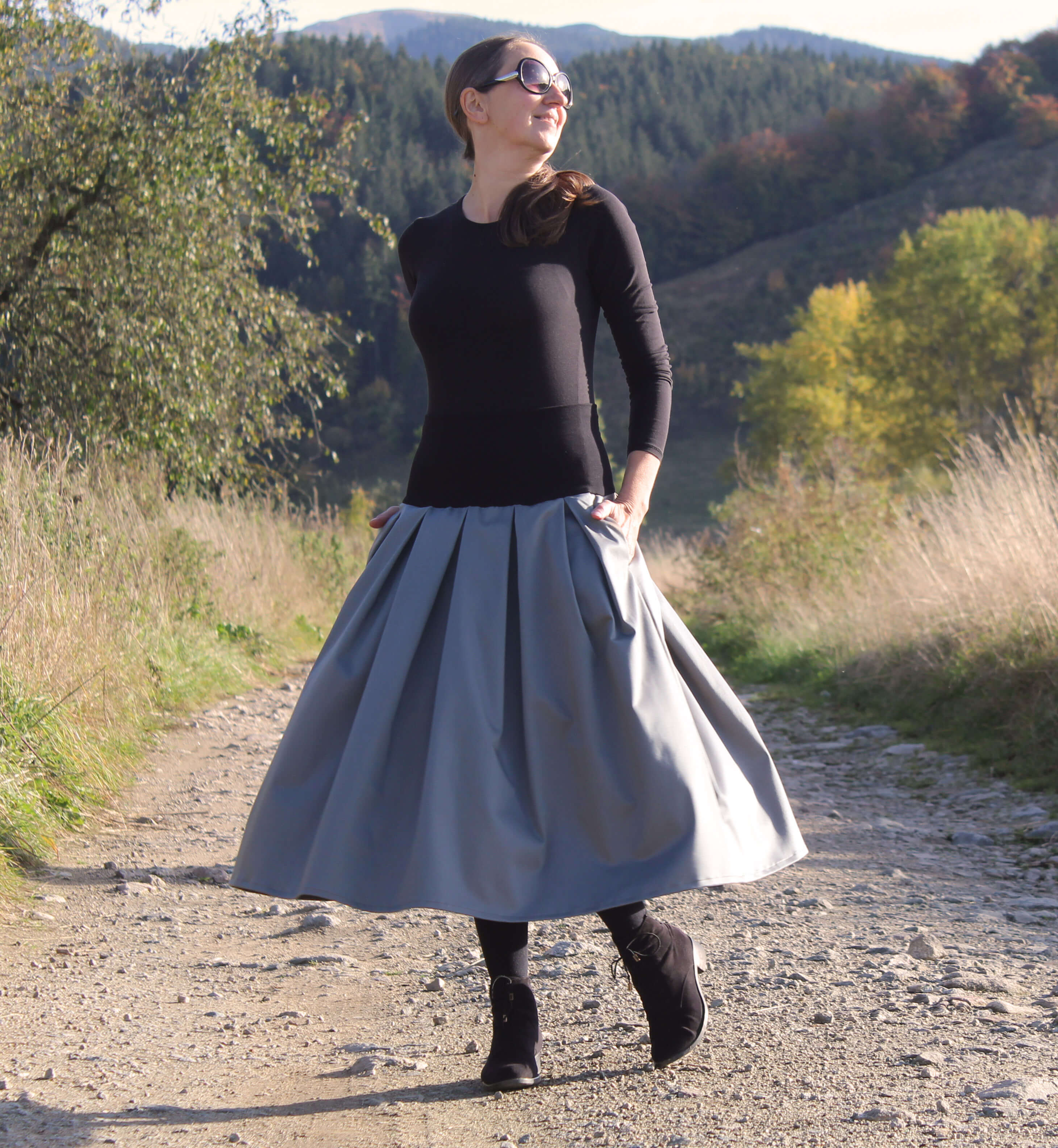 Sukňa je ušitá z mierne elastickej zmesovej kostýmovky béžovej farby. Je skladaná. V bočných švíkoch sú vsadené vrecká. V hornej časti je pružný úpletový pás, takže sa pekne prispôsobí postave. Sukňa je veľmi pohodlná na nosenie.