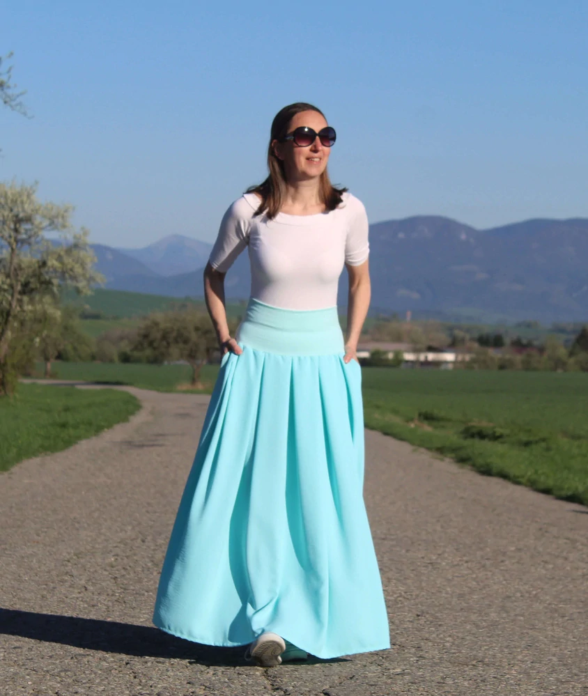 3. Dlhá "mentolová" skladaná sukňa