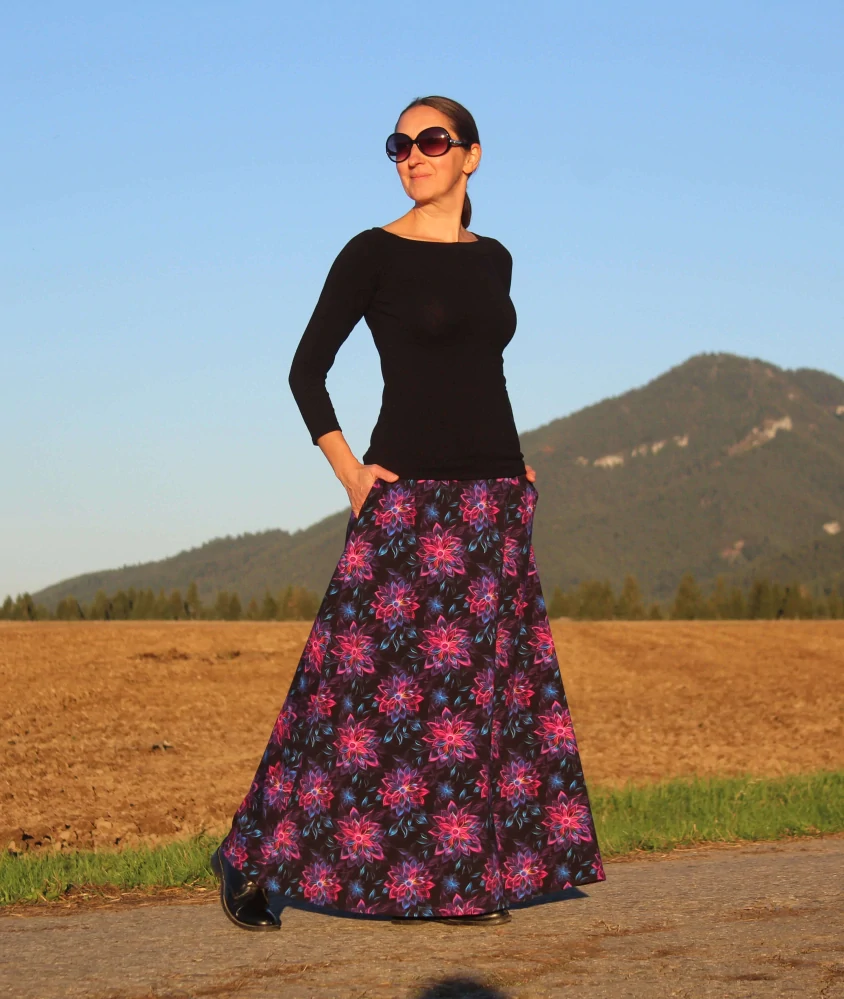 Dlhá sukňa ružovo-fialovo-modré kvety