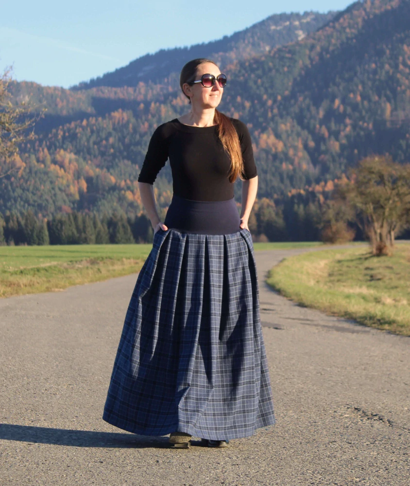 Dlhá sukňa "svetlo-tmavomodrá" károvaná