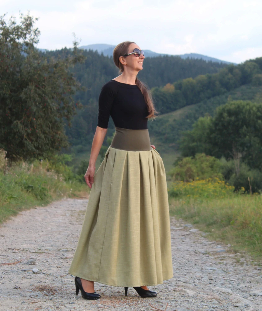 Dlhá svetlozelená skladaná sukňaSkladom42 €/ ks