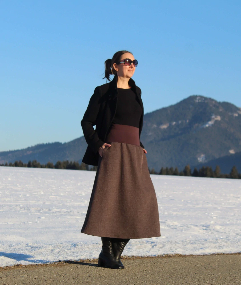 Hnedá trojštvrťová sukňa áčkového strihu je ideálnou voľbou pre ženy, ktoré hľadajú spojenie pohodlia, ženskosti a univerzálneho štýlu. Vďaka premyslenému strihu krásne zvýrazňuje siluetu a zároveň poskytuje dostatok voľnosti pri pohybe.