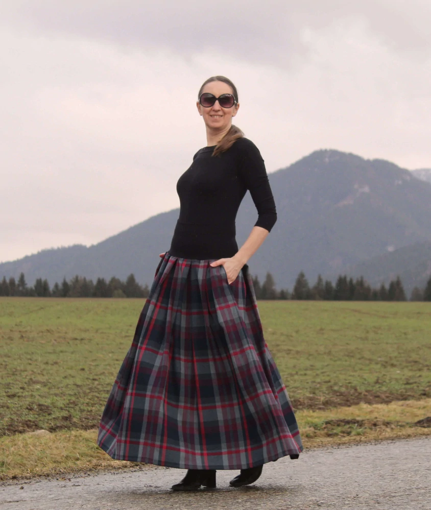 Táto skladaná sukňa s károvaným vzorom je ideálnym kúskom pre ženy, ktoré hľadajú spojenie elegancie, pohodlia a univerzálnosti. Sukňa je ušitá z mäkkej, hrejivej tkanej kostýmovky, ktorá je príjemná na dotyk a zároveň si zachováva tvar aj pri častom nosení.