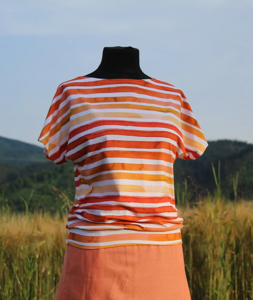 Tričko bielo-žlto-oranžovo-červené pruhy