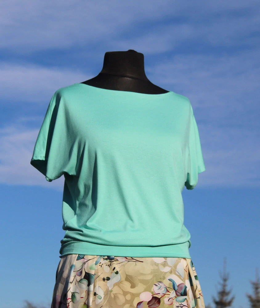 Elegantné a pohodlné tričko ušité z veľmi príjemného, padavého a mäkkého viskózového úpletu (95 % viskóza, 5 % elasten). Tričko je voľného strihu, vďaka ktorému sú zakryté aj menšie nedostatky na postave. Tričko je jemnej mentolovej farby a výborne sa hodí k inému výraznejšiemu kúsku oblečenia alebo je dobre kombinovateľné aj s iným jednofarebným kúskom. V hornej časti má lodičkový výstrih a v dolnej časti patent.