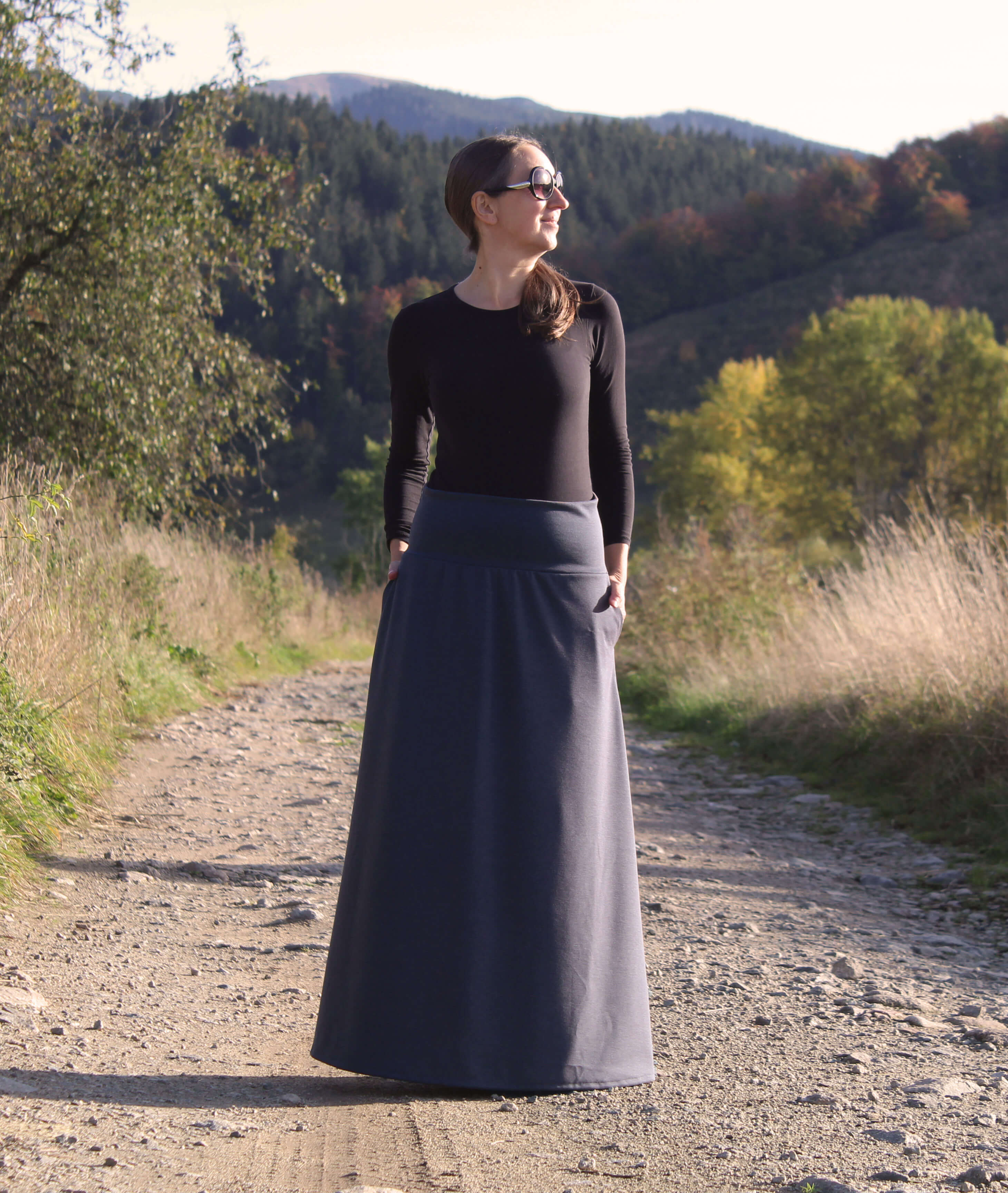 Sukňa je ušitá z príjemného viskózového úpletu šedej farby. Je A-čkového strihu. V bočných švíkoch sú vsadené vrecká. V hornej časti je pružný úpletový pás, takže sa pekne prispôsobí postave. Sukňa je veľmi pohodlná na nosenie. Vhodná na prechodné a zimné obdobie.